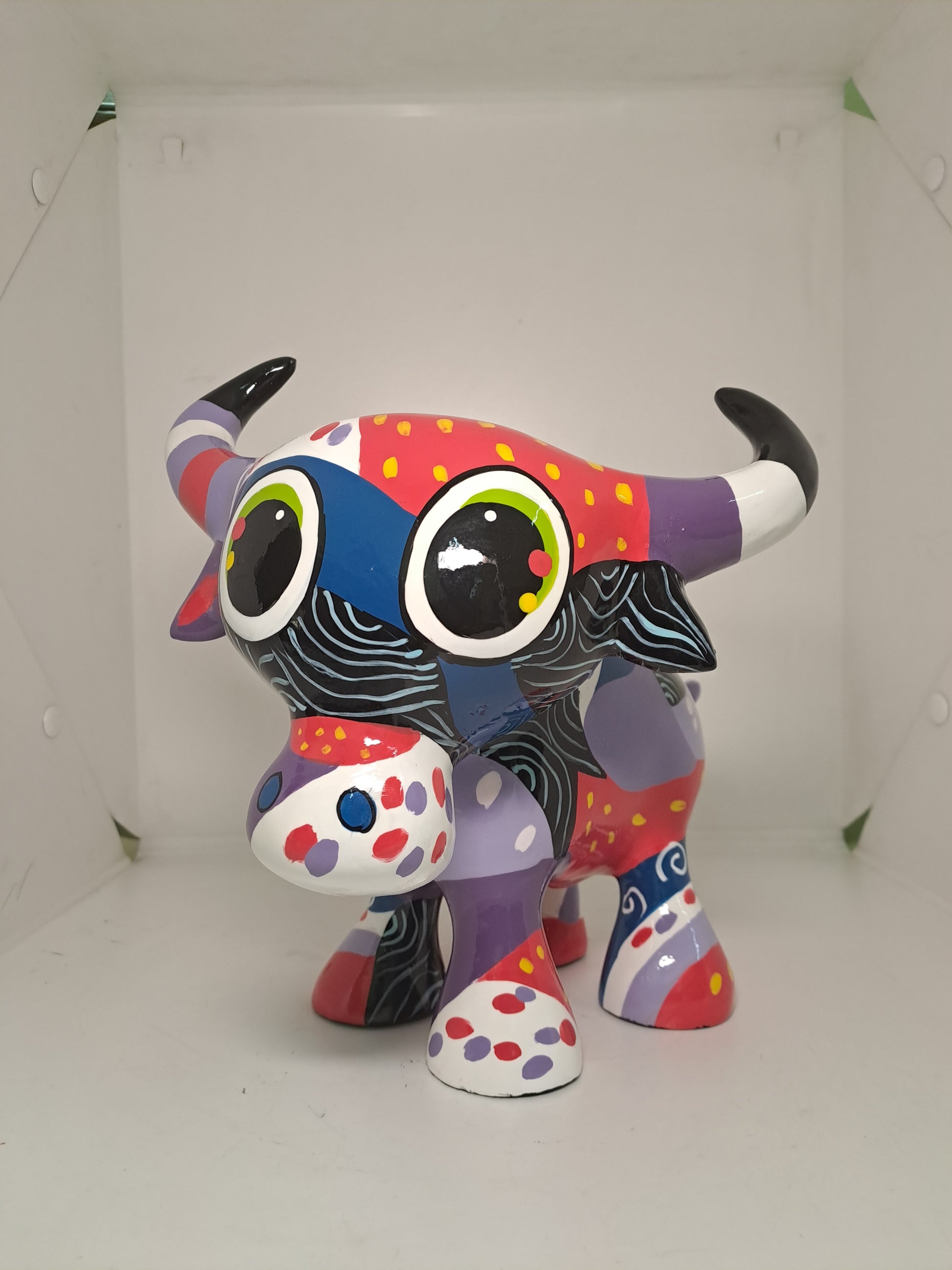 Bring a dose of playful charm and cultural richness into your space with Duke Bull! With its big, soulful eyes and endearing smile, the figures stands in a relaxed yet playful pose, radiating warmth and sweetness.Dimensions Inches: 6x5x5